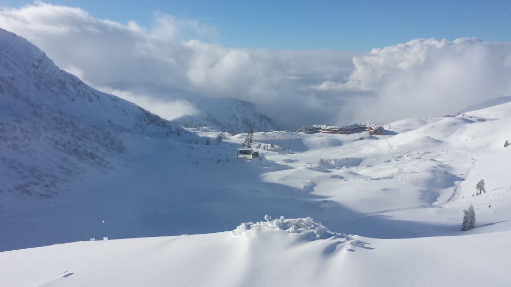 C’era una volta Montecampione, stazione sciistica della bassa Val Camonica (BS) che sul finire del secolo scorso raggiunse importanti vertici di notorietà tra gli sciatori. Poi una serie di problemi societari segnò la decadenza, con impianti fermi e piste da discesa ridotte all’osso e che non aprivano tutti gli inverni. Nemmeno il traino di due campionesse come Nadia (oggi apprezzata commentatrice sulle reti RAI) ed Elena Fanchini, quest’ultima scomparsa prematuramente per una malattia, entrambe capaci di vincere medaglie ai campionati del mondo di sci riuscì a risollevare le sorti della località. L’inversione di rotta dovrebbe iniziare il prossimo inverno con la prevista riapertura di due seggiovie al posto di altrettanti impianti fermi da anni per fine vita. Intanto però Montecampione è riuscito a conquistare uno spazio importante nel cuore di scialpinisti e ciaspolatori grazie alla favorevole conformazione del territorio e a grandi panorami che spaziano dalle pareti della Presolana del Pizzo Coca e dell’Adamello fino al Monte Guglielmo mentre a bassa quota si possono osservare il Lago d’Iseo e il Lago di Garda. Da non perdere, prima o dopo l’escursione, la salita al piazzale dove è stato installato un grande monumento dedicato a Marco Pantani che proprio qui conquistò una delle sue vittorie più entusiasmanti.