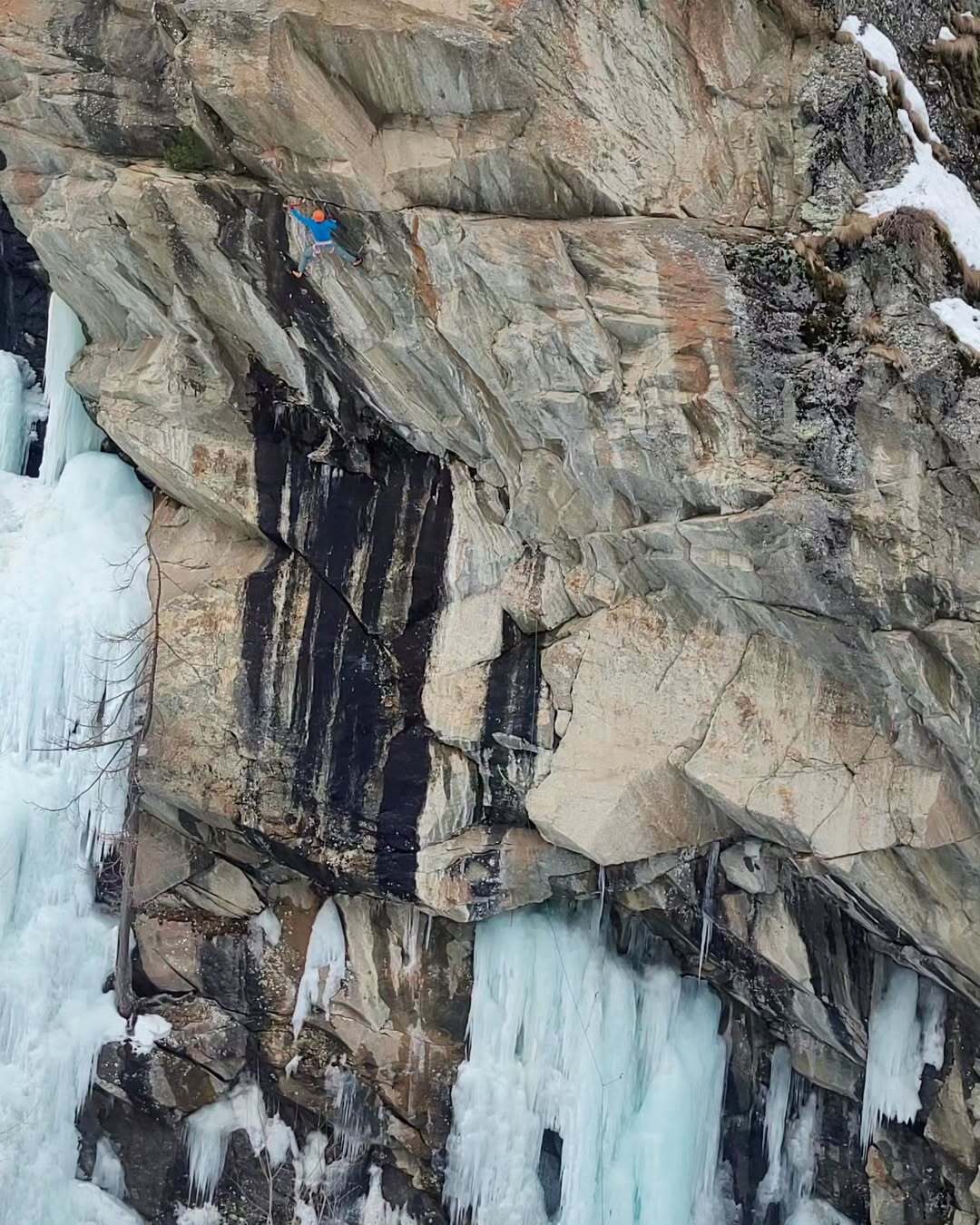 Lo scorso 5 marzo Filip Babicz, insieme a Richard Tiraboschi, ha completato la prima salita in libera integrale di MegaPhone (M11+), una difficile via multipitch aperta nel 2023. A tracciarla, in solitaria, era stato Niccolò Bruni nel dicembre 2023, nel canyon della Valsavarenche. Una linea moderna, tecnica e selettiva, che ha attirato subito l’attenzione della scena del misto estremo.