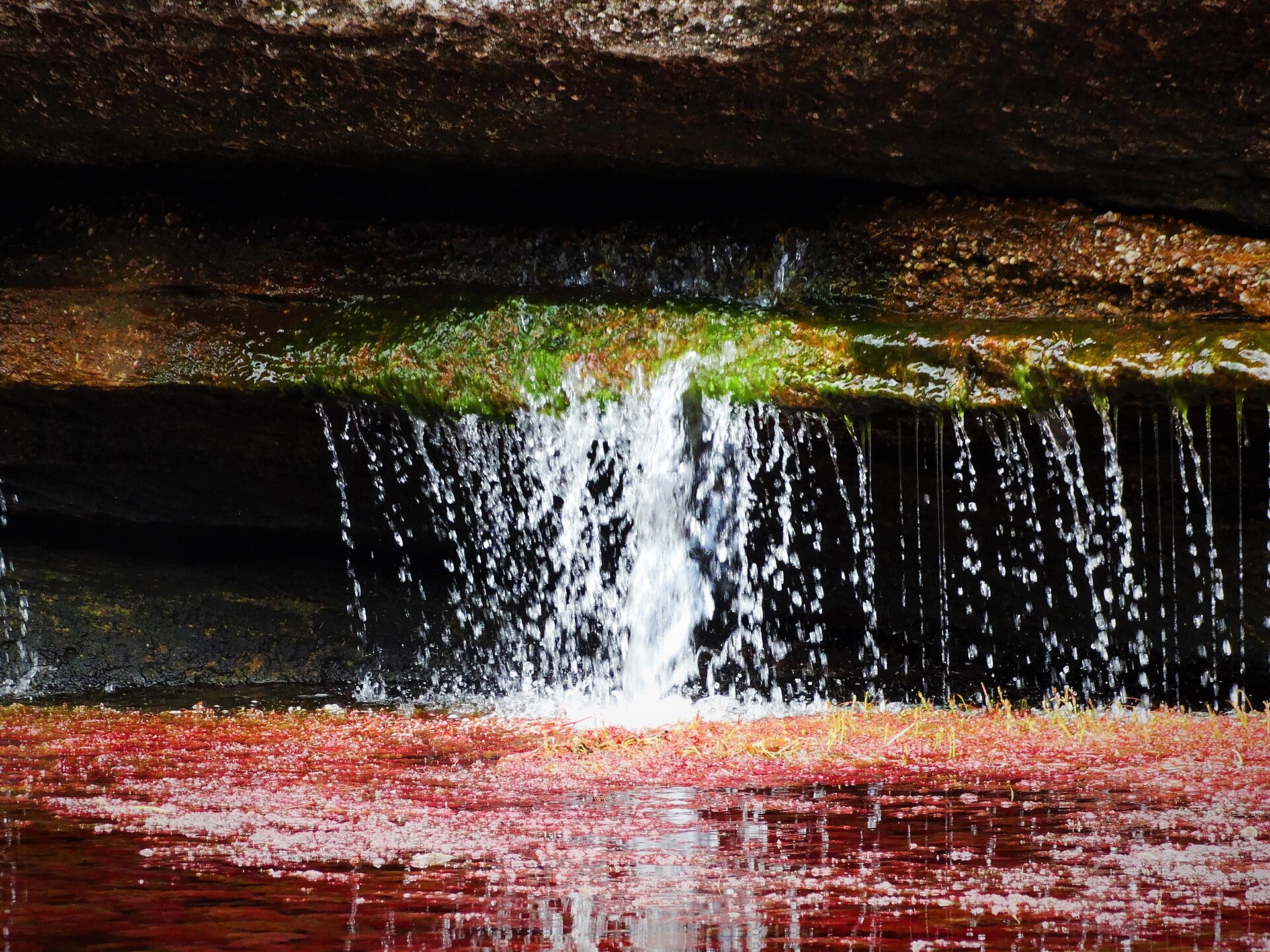 Orientativamente tra giugno e dicembre, il colore delle acque del Caño Cristales, in particolare nel tratto noto come El Paso de la Danta (Il Passo del Tapiro) muta improvvisamente, assumendo sfumature del rosso, del giallo e del verde. Alla base dell’effetto arcobaleno vi è una ragione di natura principalmente organica.