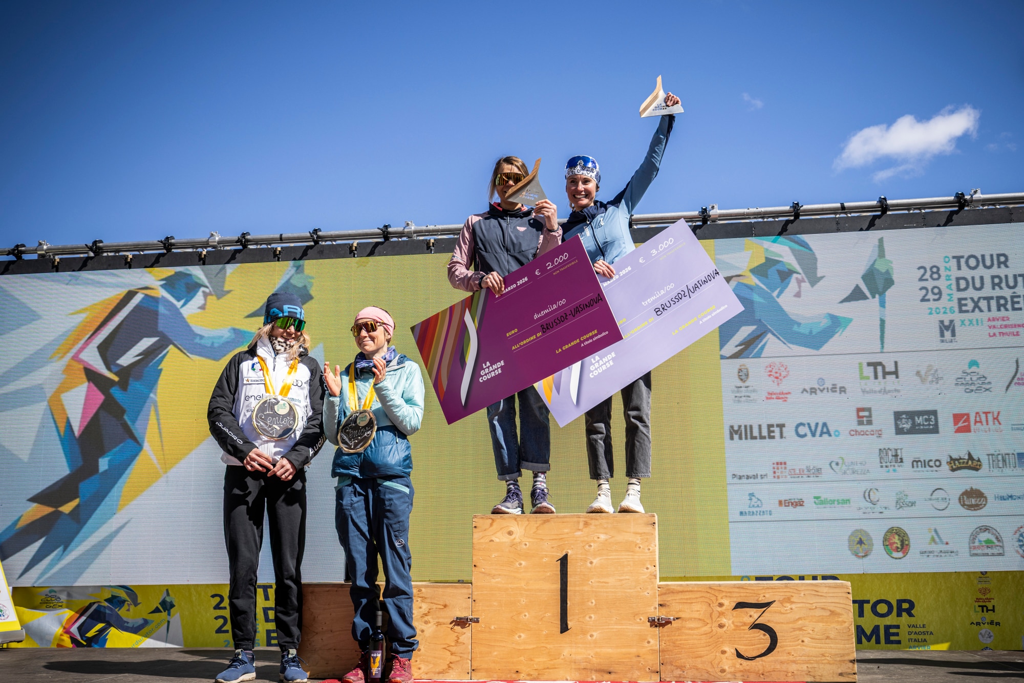 La gara si era aperta il 28 marzo con una frazione già destinata a segnare la classifica: 24 km tra La Thuile e Valgrisenche, con oltre 2400 metri di dislivello positivo e passaggi fino ai 3486 metri della Testa del Rutor. Condizioni severe, con vento forte e temperature rigide, hanno reso ancora più selettiva la tappa. A dettare il ritmo erano stati i vincitori della Pierra Menta, Xavier Gachet e William Bon Mardion, primi al traguardo in 2h43’19”. Alle loro spalle i francesi Samuel Equy – Anselme Damevin e la coppia Magnini – Palzer, terzi ma già in piena corsa per la generale.