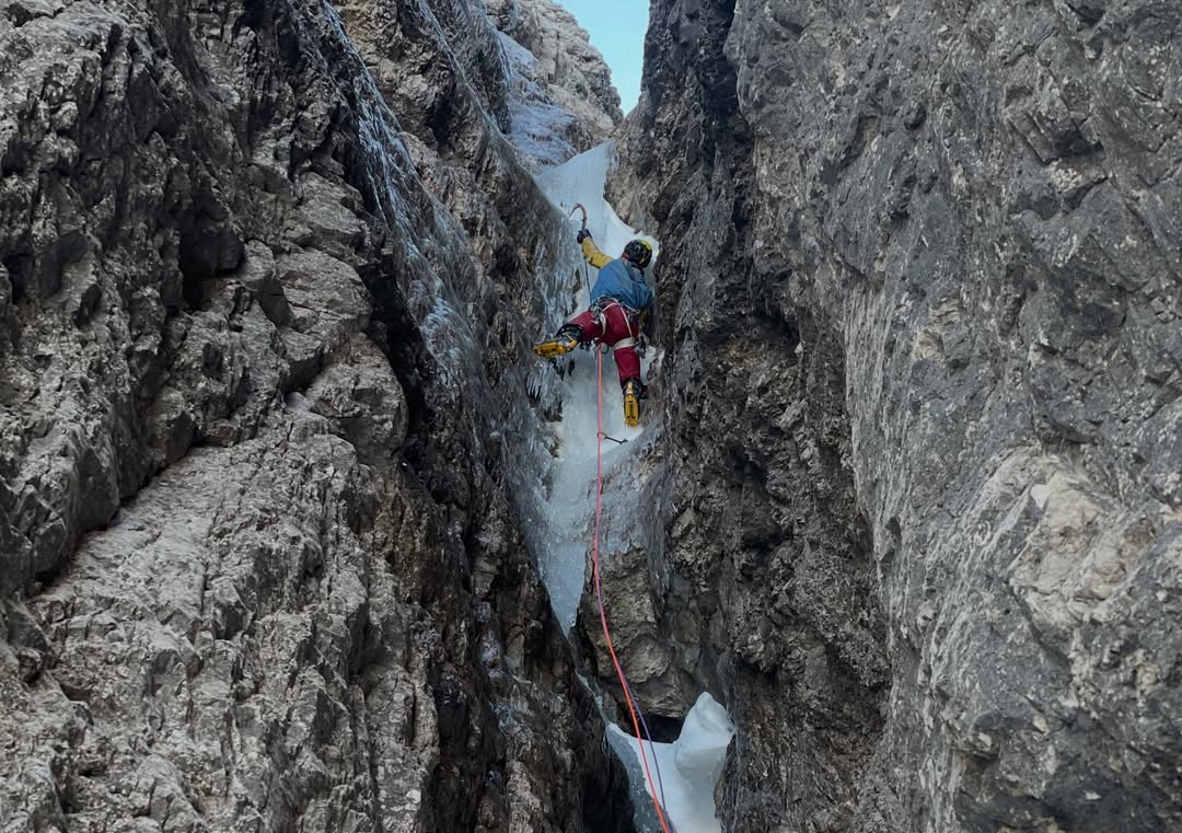 Partono “senza grandi aspettative”, ma trovano invece ghiaccio abbondante e continuo, una condizione tutt’altro che scontata in una stagione avara su molte linee. “Dopo le ultime salite in cui non avevamo avuto fortuna nel trovare ghiaccio, su questa abbiamo avuto la meritata ricompensa”.