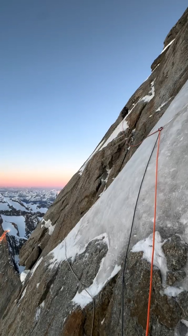 Una linea iconica, lunga circa 1100 metri e valutata ED+ con passaggi fino a M9+, che i due hanno affrontato senza esperienze pregresse, leggendo la parete metro dopo metro, tiro dopo tiro. Una salita che rappresenta una sintesi perfetta tra arrampicata tecnica e alpinismo d’alta quota. A raccontare la portata dell’esperienza è lo stesso Louna Ladevant, che sui social ha ripercorso un progetto durato anni: “Ci sono progetti che scorrono lisci e questo non è uno di quelli. Tre anni dopo l’inizio di questa avventura, Mémé e io siamo finalmente in vetta alla parete nord delle Grandes Jorasses lungo la mitica ‘Directe de l’Amitié’, interamente in libera e a vista. Un’avventura pazzesca, con 22 lunghezze più o meno tutte difficili, due bivacchi in portaledge e uno in cima.