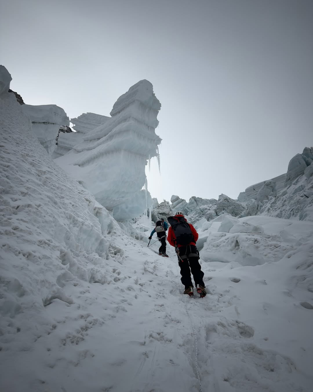 Negli ultimi giorni infatti, gli sherpa incaricati dell’attrezzatura della via hanno intensificato le verifiche insieme ad altri team, muovendosi tra valutazioni prudenti e un cauto ottimismo. Il nodo resta la sicurezza: il ghiacciaio non è tecnicamente impraticabile, ma la presenza del grande seracco instabile continua a rappresentare un rischio concreto, con scariche frequenti di blocchi di ghiaccio anche di grandi dimensioni.