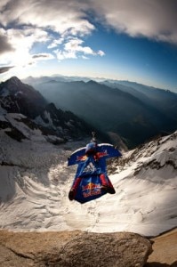 Il lancio è stato eseguito grazie a una speciale tuta alare che gli ha permesso durante la caduta libera di superare la velocità di 200 chilometri, prima di azionare il paracadute e atterrare sul ghiacciaio della Brenva, a 3.100 metri di quota.