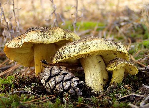 Funghi tossici: Tricholoma equestre e Russula subnigricans.