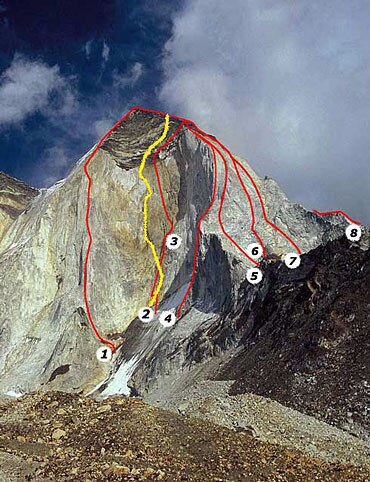 Bhagirati III parete ovest - Impossible Star è la linea numero 1 (Photo courtesy www.climbandmore.com)