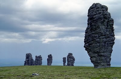 Queste immense colonne di pietra, alte dai 30 ai 42 metri, si stagliano su un altopiano che si trova nella parte Nord della catena montuosa che separa la Russia dall’Europa, nel distretto di Troitsko-Pechorsky della Repubblica di Komi. Sono state modellate dalla natura per duecento milioni di anni, fino a sembrare degli uomini enormi, bloccati nell’atto di camminare.