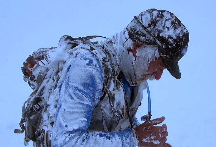 Carlos Soria pochi minuti dopo la valanga (Photo courtesy facebook - Carlo Soria)