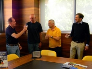 La conferenza stampa si è tenuta nella sede di Via Amendola dell’azienda lecchese, alla presenza del presidente Angelo Fortunati che ha ribattezzato Panzeri “il re degli ottomila” e di un altro presidente, quello del Cai Lecco, Emilio Aldeghi.