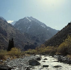 E’ solcata da due grandi valli, Chuiskaya e Ferganskaya, che occupano il nord e il nord-ovest del paese. In un’area relativamente ristretta, quindi, si ha un’enorme varietà di paesaggi che vanno da ambienti con caratteristiche tropicali ad habitat con clima temperato, fino alla steppa, al deserto e ai ghiacciai con nevi perenni.