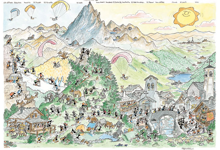 Sotto, una gallery di vignette create da Vettori sul tema montagna.