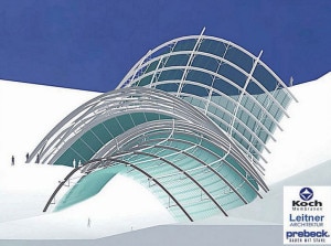 La struttura proposta da Aloys è una specie di gabbia di alluminio in grado di aprirsi a fisarmonica a seconda delle condizioni meteo favorevoli o meno all’incremento del manto nevoso. Non solo. Al suo interno ci sarà musica e proiezione di luci che consentiranno di sciare anche di notte.