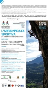arrampicata sportivaLECCO — Ogni anno le pareti del gruppo delle Grigne e del territorio lecchese, sono meta di centinaia di climber provenienti dall’Italia e dall’estero. Può l’arrampicata essere fattore critico di successo per il turismo di Lecco e dintorni? Questa la domanda che verrà fatta domani mattina al convegno: “Arrampicata sportiva: un’opportunità per il territorio” che si terrà a Palazzo delle Paure di piazza XX Settembre a partire dalle ore 9.