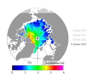 Il volume del ghiaccio artico fotografato dal satellite dell’Esa nell’ottobre del 2013 (Photo courtesy of Esa)