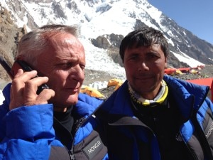 La prima spedizione ufficiale pakistana è realizzata con il supporto dell’Italia e di EvK2Cnr. Del team fanno parte Michele Cucchi, Simone Origone e Agostino Da Polenza che segue dal campo base. Ad aprire la via lungo il collo di bottiglia e il traverso si sono alternati gli sherpa con l’ossigeno e quattro pakistani: Hassan Jan, Ali Durani, Rahmat Ullah Baig e Ghulam Mehdi raggiunti in salita da Ali e Muhammad Sadiq. Simone Origone ha raggiunto quota 8200 circa e ha fatto rientro a campo 4 con Muhammad Hassan.