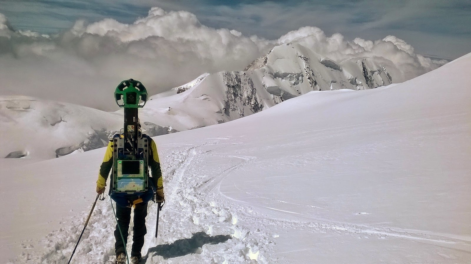 Con il trekker sulle spalle, lo zaino tecnologico da 18kg che monta 15 fotocamere per le panoramiche da 360 gradi, l’operatore di Street View ha affrontato in 8 ore la salita sulla vetta del massiccio del Monte Rosa. Il Club Alpino Italiano (Cai), a fini divulgativi, ha inoltre concesso a Google di filmare l’interno della Capanna.