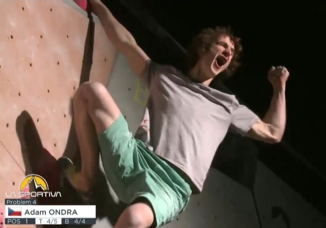 Il primo blocco è stato completato al primo tentativo da Ondra, Megos, Webb e Hojer, al secondo da Woods e al terzo da Kruder. Il secondo boulder, più tecnico rispetto al precedente, è stato chiuso solo da Ondra e Hojer, entrambi al primo tentativo. A questo punto sembrava che la sfida fosse tra il ceco e il tedesco, ma il terzo blocco ha riaperto la competizione in quanto tutti tranne Hojer sono riusciti a chiuderlo. Il quarto blocco, dopo una chiusura al secondo tentativo, ha sancito in anticipo la vittoria del fortissimo atleta ventunenne.