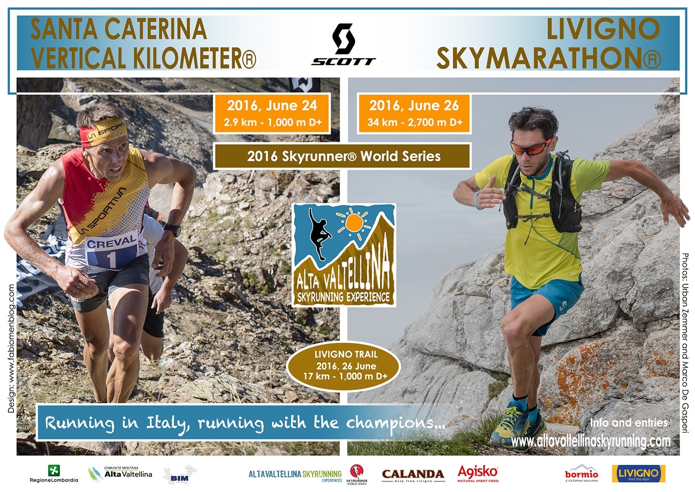 Tre gare, due suggestive location, tracciati ricavati tra tecniche creste aeree, ripide salite, funamboliche discese e veloci single track, passando per strade bianche e prati in fiore che vedono dietro le quinte uno staff giovane guidato dal sei volte iridato della corsa in montagna e atleta international di SCOTT Marco De Gasperi: «L’idea che sta alla base del progetto Alta Valtellina Skyrunning Experience è il volere riportare il gotha della specialità e il “popolo dello sky” nelle valli e sulle montagne dove negli anni ’90 grandi campioni del calibro di Adriano Greco e Fabio Meraldi si sono allenati e posto le basi dei loro successi. Oggi entrambi questi campioni sono al nostro fianco nel ruolo di guide alpina e responsabili dei tracciati. Una garanzia di qualità per un evento tanto atteso che per noi sarà un vero e proprio banco di prova».