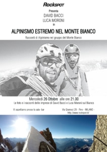 PERO, Milano — Appassionati di alpinismo e montagna, segnatevi questo appuntamento: il 26 ottobre alle ore 21 presso la sede di Pero di Rockspot si terrà una serata con David Bacci e Luca Moroni dal titolo “ALPINISMO ESTREMO NEL MONTE BIANCO”, con foto e racconti di Alpinismo nel gruppo del Bianco.
