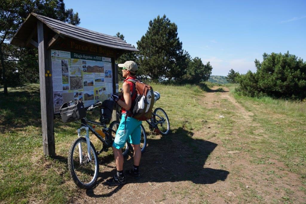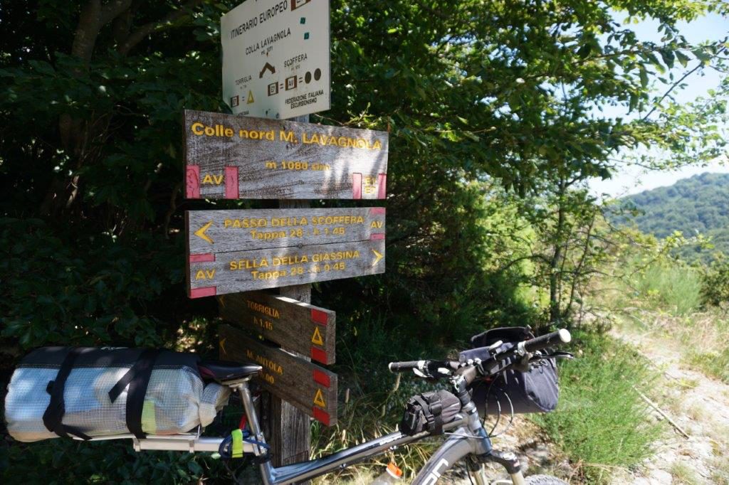 Il tracciato dell’AVML è pensato per un pubblico di escursionisti, quindi non sempre ciclabile: in alcuni tratti è opportuno deviare su strade sterrate o asfaltate per evitare tratti faticosi con la bici a spinta o, ancora peggio, in spalla! Al momento non esiste una versione “ufficiale” per mtb, ma in rete si trovano relazioni di ciclisti che hanno interpretato in modo più o meno modificato il percorso. Noi abbiamo scelto di mantenerci fedeli allo stile “selvatico” che ci contraddistingue, dormendo all’aperto, sotto un telo-tenda, ma è possibile fare tappa nelle numerose strutture che si trovano direttamente sul tracciato o nelle vicinanze. Abbiamo percorso 490 km in dieci giorni: in realtà le tappe possono essere modulate in base alle proprie esigenze, tenendo conto che le strutture ricettive sono abbastanza diffuse e comunque la bici permette di raggiungere rapidamente i paesi dell’Appennino più vicini al crinale, dove trovare maggiore varietà di servizi.