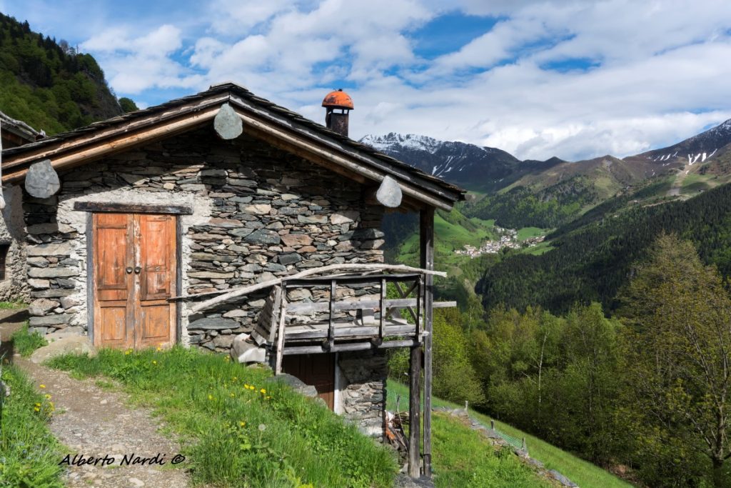 Il nostro itinerario prosegue invece oltre la cascata fino a raggiungere un bivio: a sinistra si va a Case Redorta mentre a destra un altro percorso sale deciso per ancora mezz’ora arrivando alle baite del Rigù. Il borgo di Case Redorta, con le sue baite recentemente ristrutturate, è situato su un grandioso balcone panoramico da cui lo sguardo spazia su buona parte dell’Alta val Seriana e numerosissime cime: a sud-ovest il Monte Secco (2266 m), la Cima del Fop (2316 m), Monte Pradella (2626 m), a sud i già citati Vigna Soliva (2356 m) e Pizzo della Corna (2351 m), a est il Monte Crostaro (2102 m) e il Monte Sasna (2229 m). Con un po’ di fortuna non è difficile incontrare gli stambecchi che numerosi e piuttosto confidenti pascolano sui prati che circondano il borgo. Ritorno lungo lo stesso sentiero della salita.