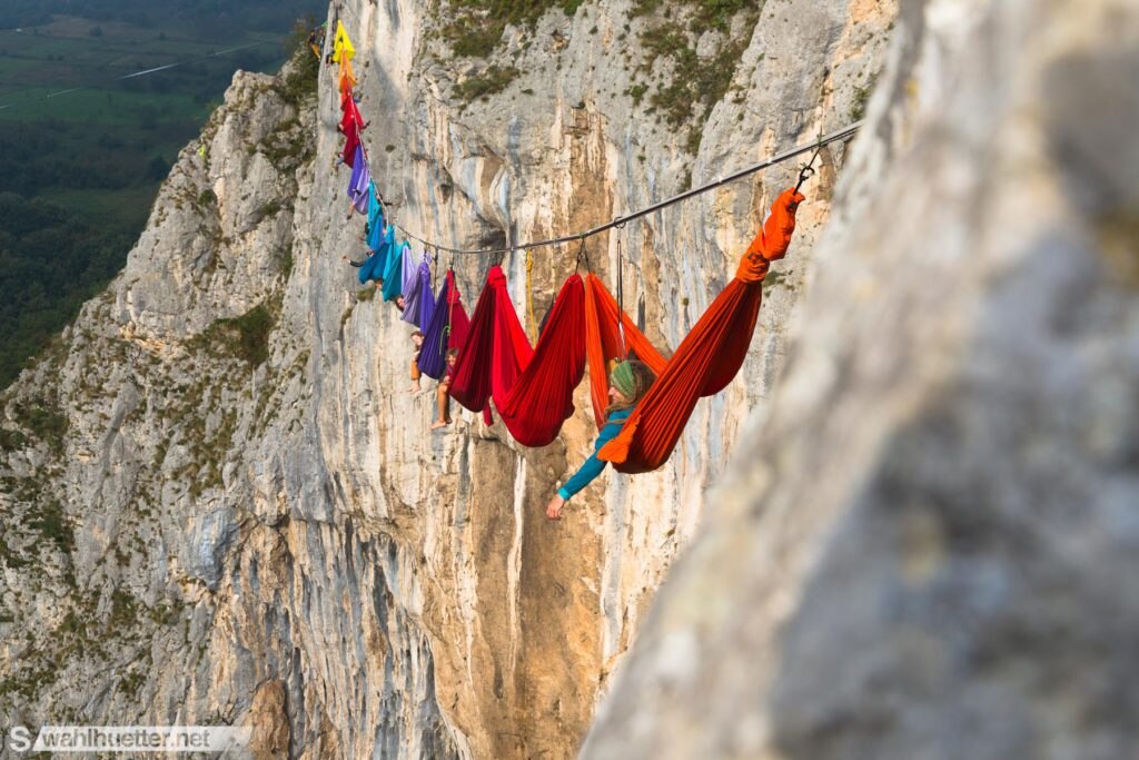 Riposarsi per 4 ore in cordata su amache sospese a 200 metri da terra, in Bosnia Erzegovina. Forse qualcuno non troverà così rilassante la cosa, ma questa è l’insolita impresa affrontata da 19 scalatori in occasione del Drill and Chill Climbing and Highlining Festival, incontro che promuove l’arrampicata e le attività outdoor vicino a Banja Luka.