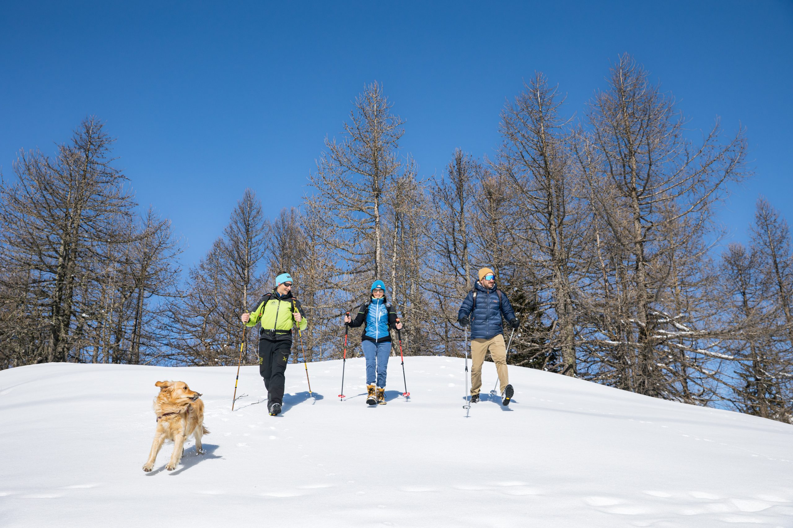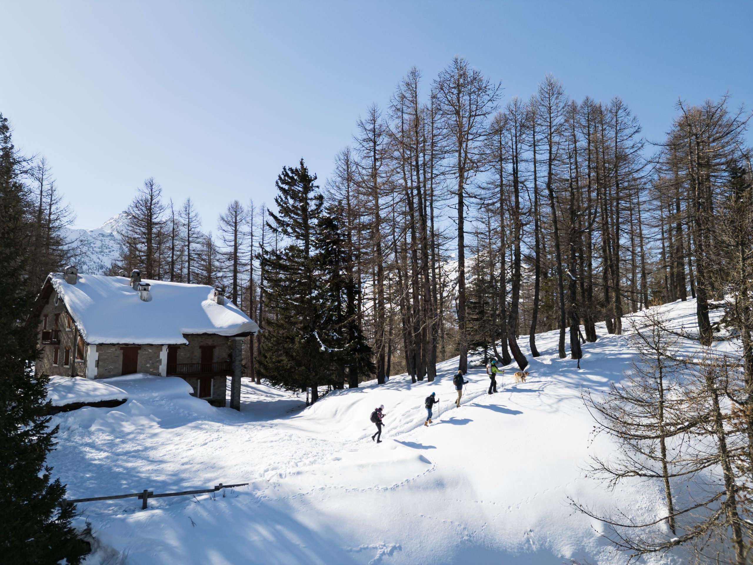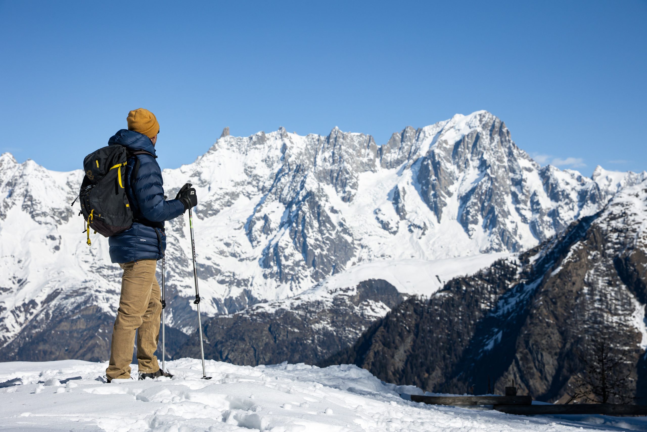 Per gli escursionisti, il versante più appartato del Monte Bianco rappresenta un vero e proprio invito a muoversi a passo lento, lungo percorsi innevati da esplorare a piedi o con le racchette da neve. Intorno a La Thuile ci si muove tra foreste di conifere, radure e minuscoli alpeggi, ma non appena si sbuca oltre il limite del bosco la vista può spaziare su un’infinita successione di vette, dal vicinissimo ghiacciaio del Rutor all’inconfondibile calotta glaciale del “Re delle Alpi”, dal fantastico monolite roccioso del Dente del Gigante agli eleganti, grandiosi speroni delle mitiche Grandes Jorasses. Molti itinerari escursionistici invernali della zona fanno parte del La Thuile Infinity Trekking, un gruppo di percorsi segnalati consultabili sulla piattaforma komoot “Winter Walks” – con mappe 2D e 3D e tracce GPS – o tramite l’app Espace San Bernardo, e sono adatti anche ai principianti. Ai più esperti, naturalmente, la zona offre anche un’infinità di altre opportunità, da valutare in funzione delle condizioni della neve e da scegliere in base a gusto, preparazione e allenamento. Altrettanto silenziosi e suggestivi sono poi i tracciati delle piste di sci di fondo della valle, che tra queste montagne possono regalare visioni e atmosfere indimenticabili.