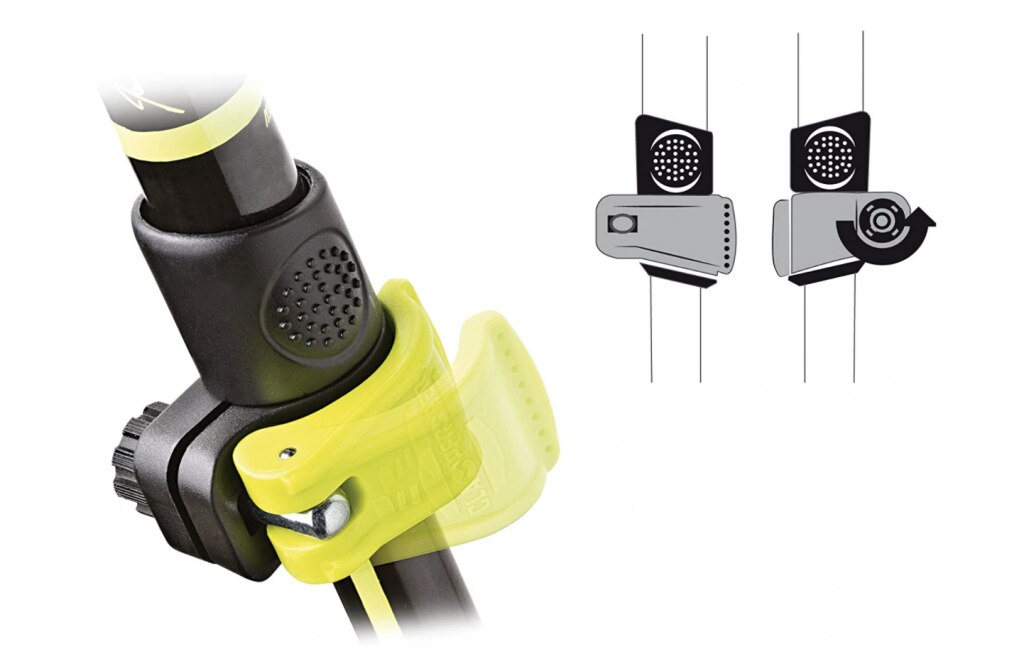 Per aprire i due segmenti, si devono usare le due levette di metallo con regolazione di precisione, funzionali anche usando i guanti.