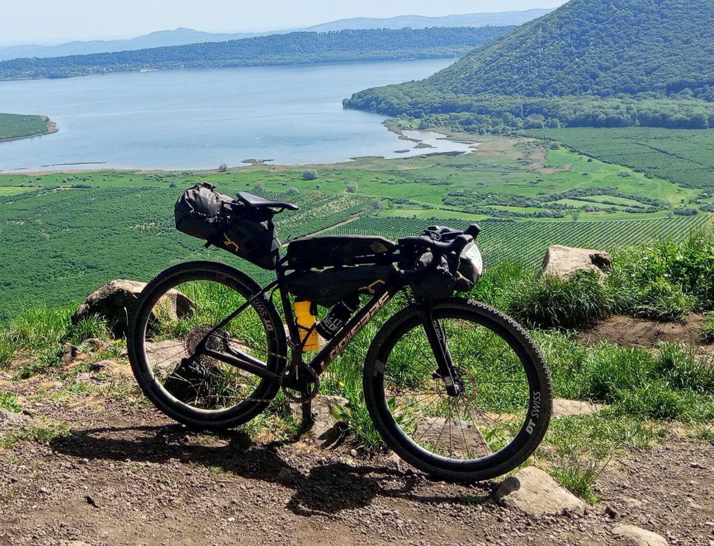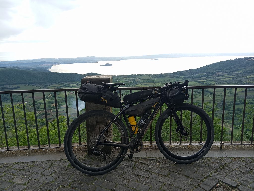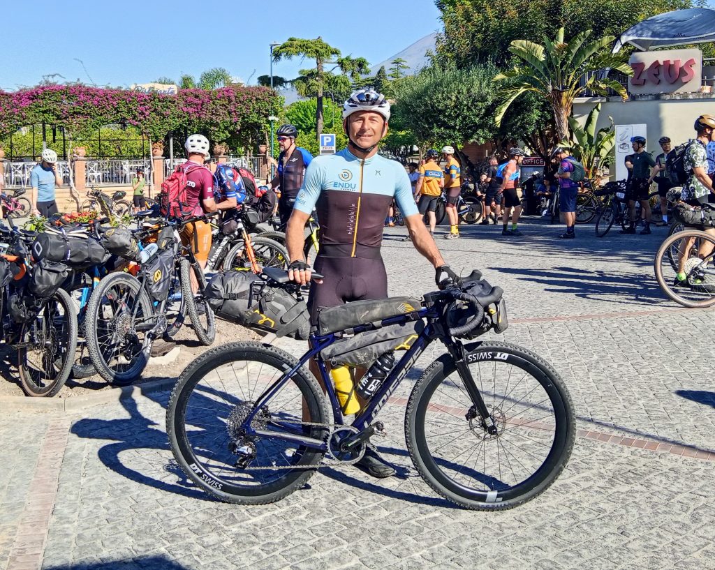 6 giorni dal 1 al 6 maggio 2025, 200/230 km al giorno, 13/14 ore quotidiane in sella, con assetto bikepacking: tre borse principali: saddle bag, handbar bag, half frame bag e una top-tube bag più due borracce da 750 ml. Assetto pensato per leggerezza e autonomia.