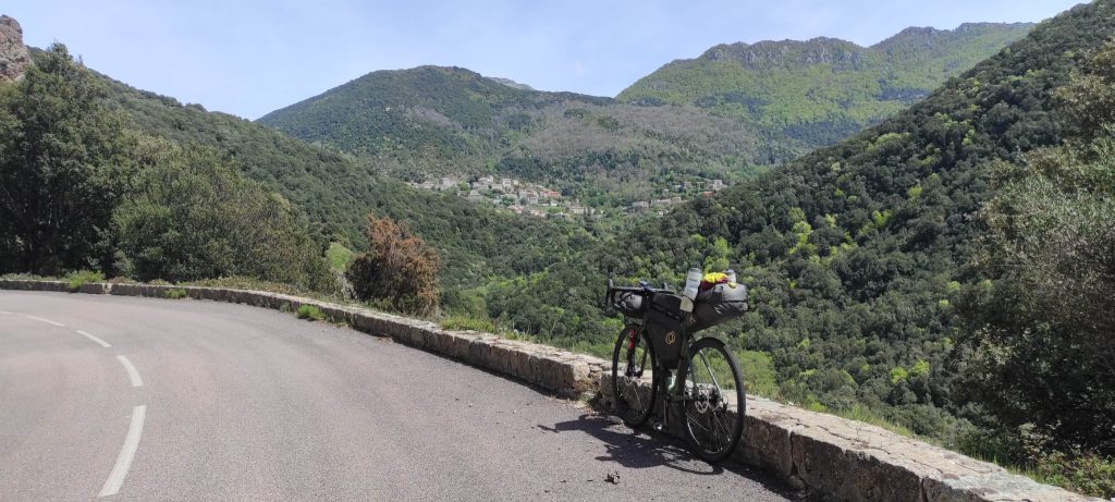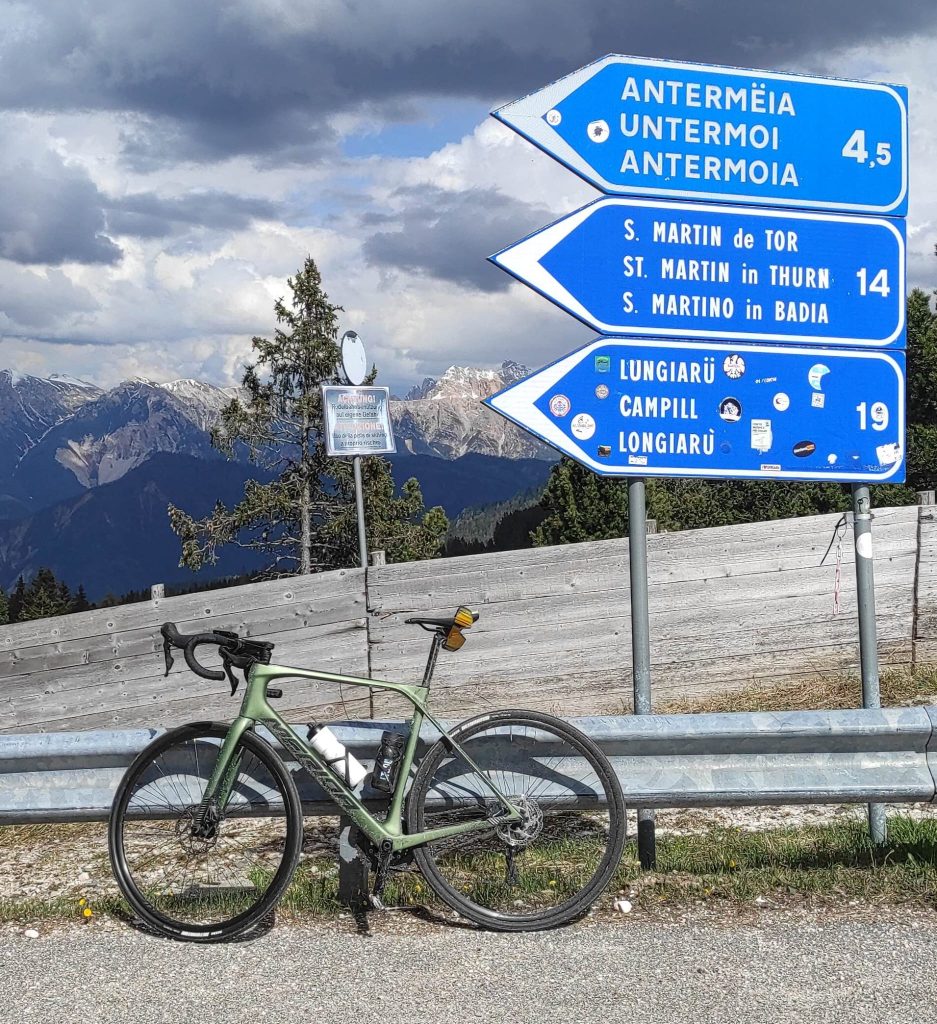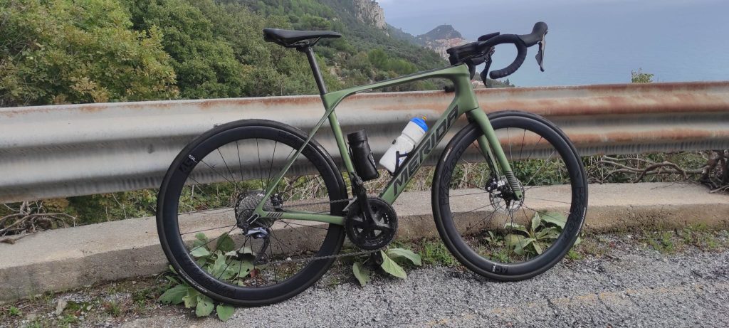 Durante la mia prova l’ho utilizzata in assetti diversi: con le borse da bikepacking per un viaggio di 5 giorni in Corsica su percorsi molto nervosi e con tanta salita. In questo caso ho optato per pneumatici gravel da 35 mm con un minimo di tassello con una pressione che al massimo raggiungeva i 4 bar. Il confort è assicurato a discapito della leggerezza ma quando hai già quasi 10 kg di bagaglio nelle borse 1 kg in più o in meno non cambia mentre dopo 10 ore in sella la schiena ringrazia. Nei tour stradali su salite come il passo delle Erbe, Il Furcia e il Bondone sebbene con pneumatici stradali più stretti il peso delle ruote in alluminio si fa sentire e dopo tanti chilometri di salita la fatica presenta il conto. L’abbiamo provata sostituendo i cerchi in allumininio con un paio di cerchi in carbonio Vision Metron SL alto profilo da 45 e con pneumatici da 28 e ho avvertito una netta differenza sia in piano, dove lanciata tiene molto meglio la velocità di crociera ma soprattutto in salita dove la scorrevolezza e il peso minore si sentono e permettono performance nettamente migliori. Durante la mia prova ho sostituito la sella per essere più comodo. Il sistema di regolazione originale risulta un pò macchinoso.