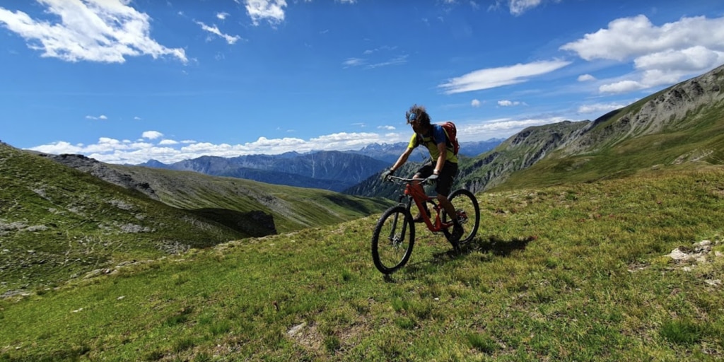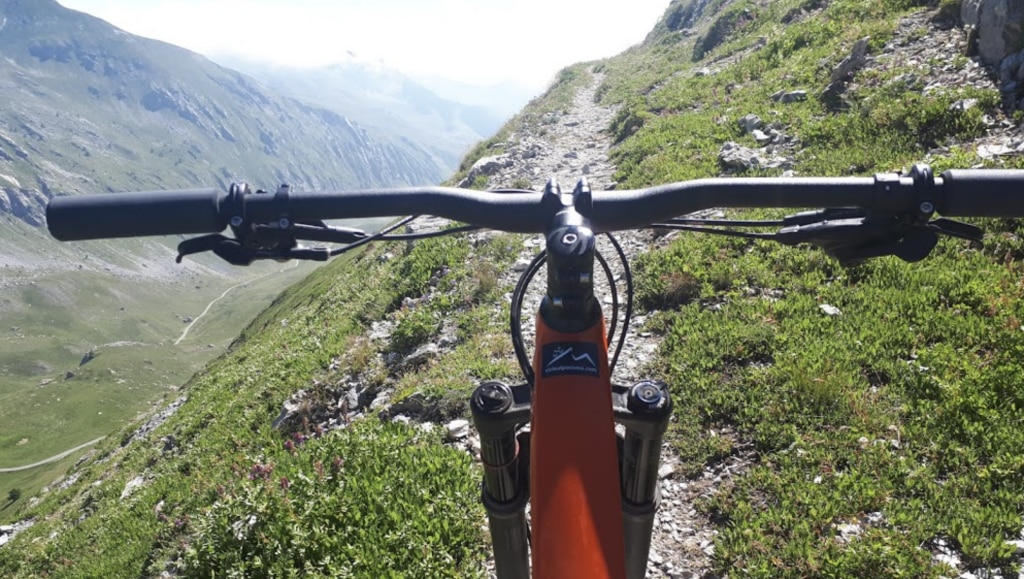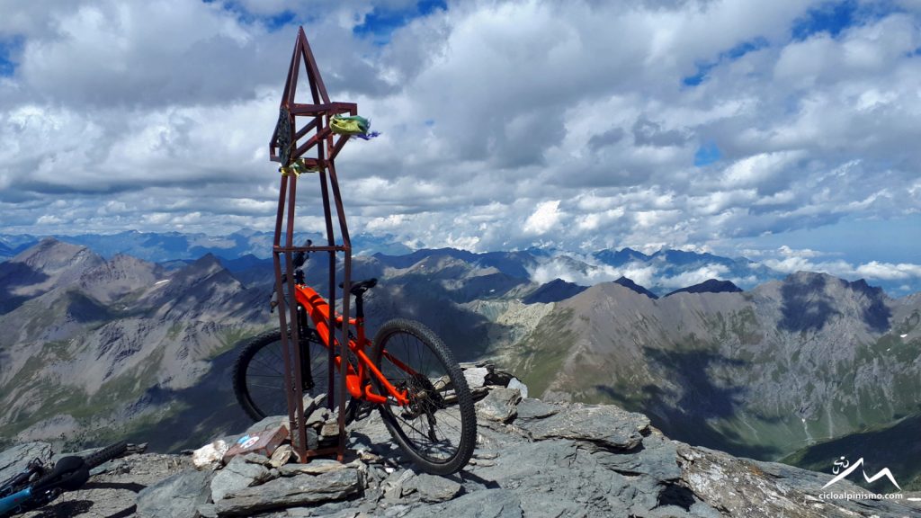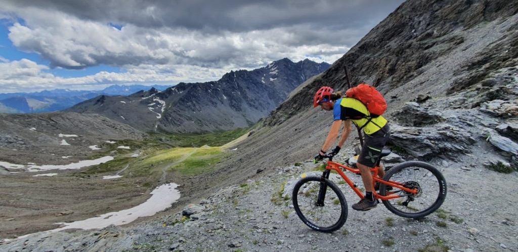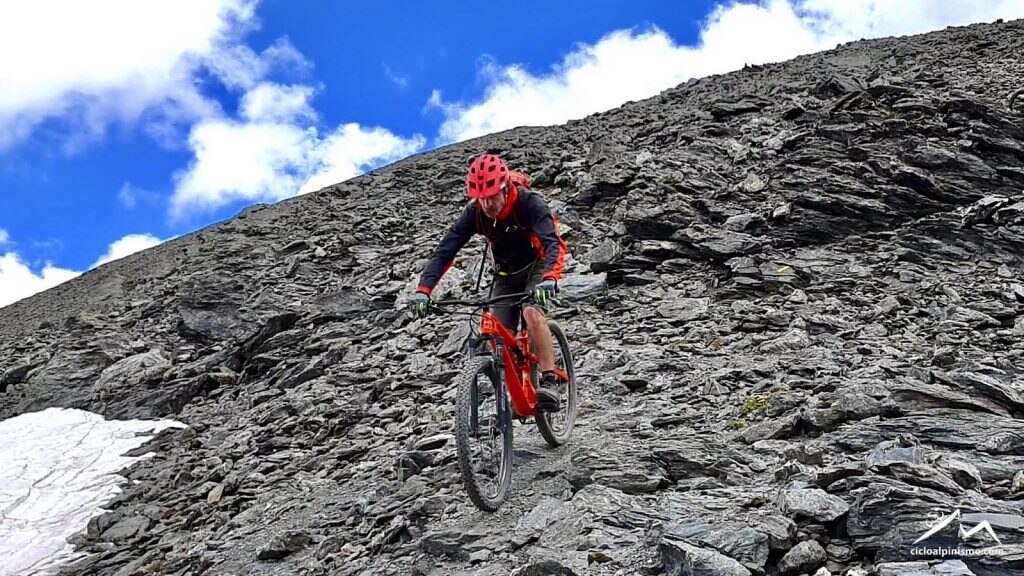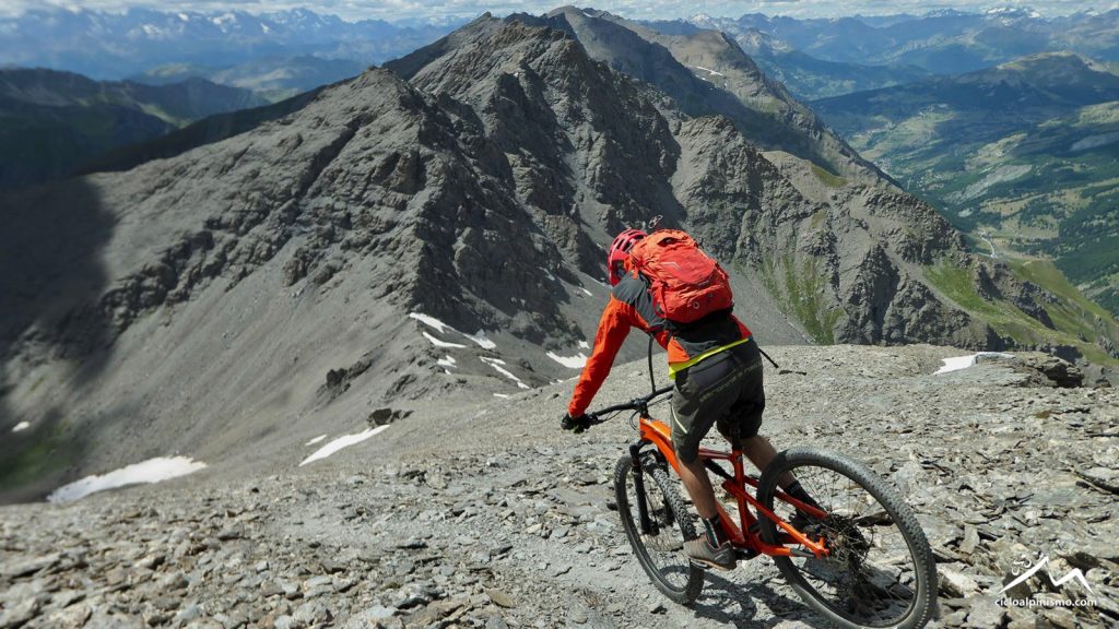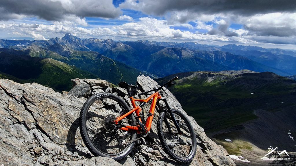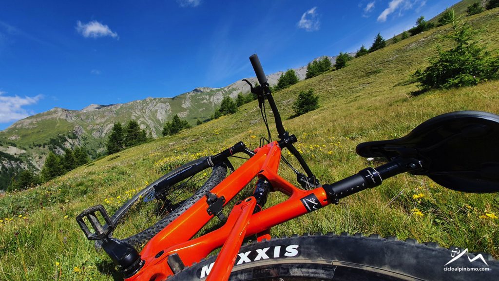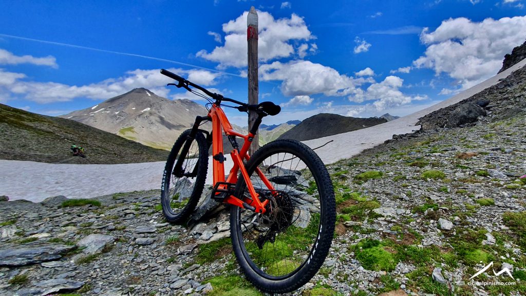 Viste le favorevoli impressioni che ho avuto dalla Scalpel sui terreni per i quali è stata progettata, ho deciso di alzare l’asticella e sottoporla a una prova più impegnativa su un terreno non consueto per il biker medio. Tre uscite in alta montagna, tra cui la vetta del Bric Froid (o Punta Ramiere) alta 3.303 metri, sullo spartiacque italo/francese: pieno “cicloalpinismo”, specialità non agonistica dove il fine è quello di vivere la montagna su due ruote, conquistare vette e inanellare itinerari esplorando posti incredibili in alta quota. Le salite sono spesso dure ai limiti della ciclabilità e spesso occorre procedere con la bici sulle spalle per superare alcune tratti, mentre le discese rappresentano la parte giocosa e la sfida è scendere in sicurezza rimanendo possibilmente sempre in sella alla bici. Normalmente per questo tipo di attività vengono utilizzate bici con escursioni maggiori sia anteriori che posteriori rispetto alla Scalpel.