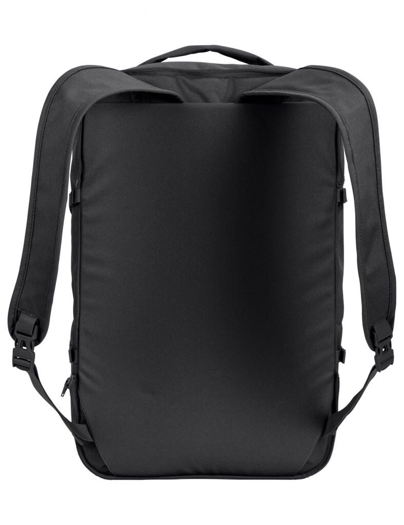 La terza borsa superiore può diventare un comodo zainetto in quanto provvista di leggeri spallaci a scomparsa. L’ho utilizzata anche come bagaglio a mano in aereo. Essendo piatta nella parte superiore l’ho spesso utilizzata mentre pedalavo come base a cui fissare il pannellino fotovoltaico a cui collegavo di volta in volta i vari dispositivi in ricarica che riponevo al sicuro nella borsa sottostante chiusa con le cerniere.