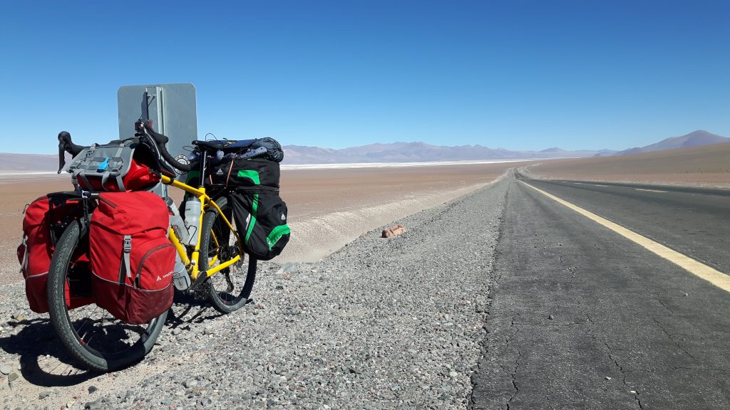 Ho utilizzato le borse in diversi viaggi sia in MTB che con bici gravel scegliendo un assetto differente: sulla Carretera Austral le ho utilizzate senza borse anteriori, all’Ojos del Salado in abbinamento alle borse Vaude Road Master Front molto simili alle due lateriali posteriori.
