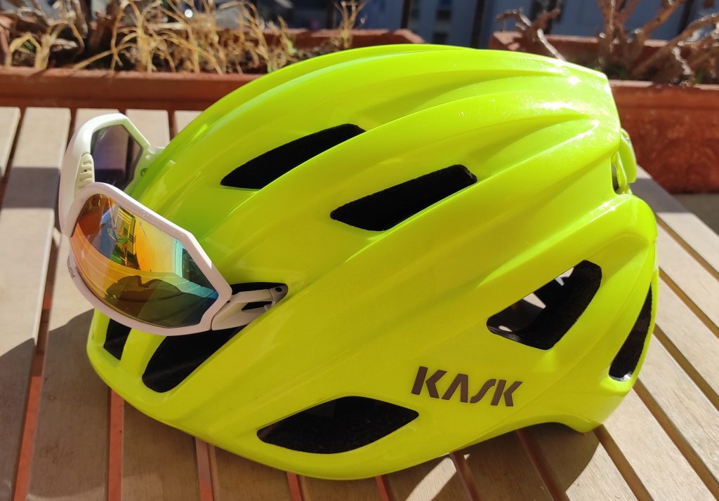 Casco stradale con calotta esterna in policarbonato con un design “estroso” che ben si comporta anche nel gravel. Leggero, ventilato, con imbottitura Blue Tech ad alto comfort e sistema di tenuta ergonomica Octo Fit per una migliore regolazione e comfort. testato secondo il protocollo KASK WG11 e supera del 48% gli standard di sicurezza europei. La tecnologia In-Mould unisce la calotta interna in poliestere a quella esterna in policarbonato migliorando l’assorbimento agli urti. Il tessuto dell’imbottitura interna viene sottoposto al trattamento antibatterico Sanitized