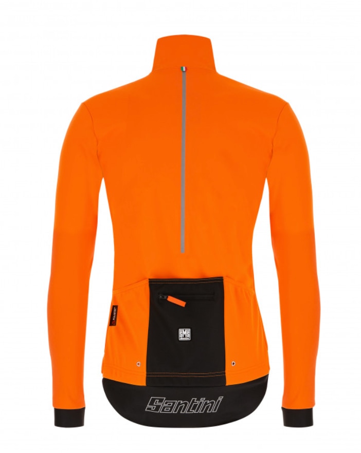 Particolari molto curati per la giacca che presenta un colore arancio vivo molto visibile anche nelle giornate meno limpide e inserti rinfrangenti su spalle e schiena.