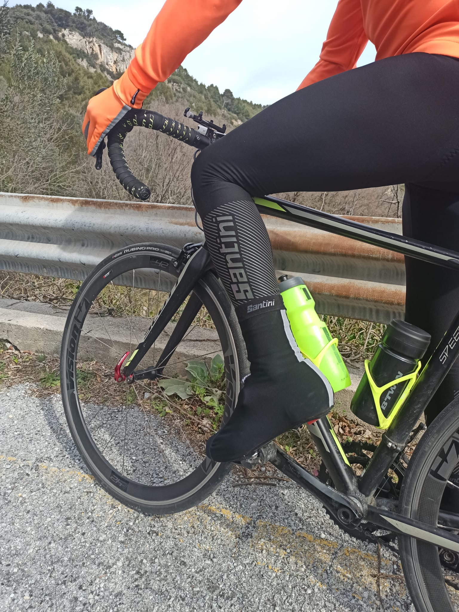 Bici da corsa, Gravel. Uscite primaverili e autunnali con notevoli sbalzi di temperatura fra la mattina presto e l’ora di pranzo. Utilizzo consigliato giacca dai + 5° ai + 15° pantalone dai +7° ai +15°