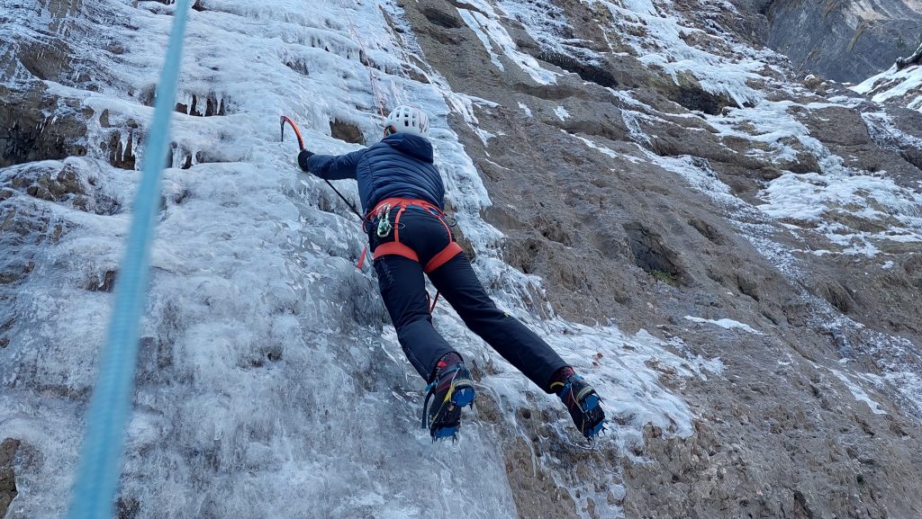 Ottima anche per l’arrampicata, in questo caso l’ho usata su cascate di ghiaccio dove confort e protezioni sono risultate ottimali.