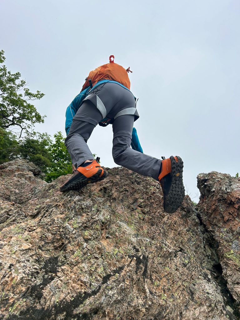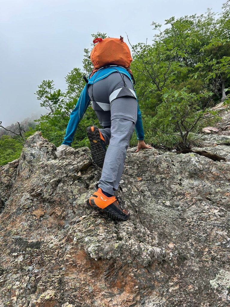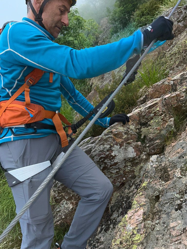 Il Salewa NXT Harness è un imbrago studiato per le vie ferrate e l’alpinismo leggero, caratterizzato da una struttura essenziale ma ben progettata. La costruzione ergonomica consente una vestibilità aderente ma comoda anche durante l’uso prolungato. I cosciali regolabili e il sistema di chiusura rapido offrono una vestizione intuitiva e veloce, perfetta in condizioni di scarsa visibilità o quando si indossano guanti. L’imbottitura è minimalista ma ben distribuita, garantendo buon comfort senza appesantire, anche durante le soste nei punti di aggancio o nei tratti più tecnici. Il punto di attacco frontale è robusto e ben visibile. Nel contesto della nostra uscita alla Via Ferrata degli Artisti, in cui ho indossato l’imbrago appena scesi dalla macchina durante tutto l’itinerario di avvicinamento e rientro dalla cima, l’imbrago Salewa NXT Harness si è comportato in modo ottimale. Durante i passaggi verticali e le sezioni sospese su ponte tibetano o staffe esposte, l’imbrago ha garantito una vestibilità stabile e sicura, senza scivolamenti o punti di pressione fastidiosi. I cosciali regolabili si sono dimostrati molto pratici durante le soste e nei momenti di adattamento con lo zaino o con indumenti extra. Apprezzata anche la leggerezza complessiva, che ha reso la progressione agile e senza impaccio nei movimenti, anche nei passaggi più acrobatici o di equilibrio.