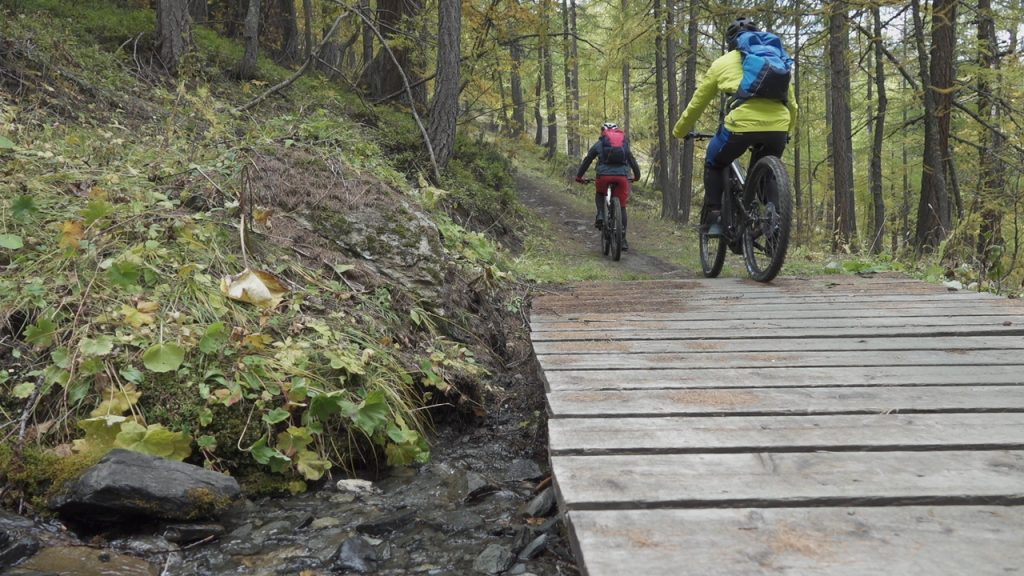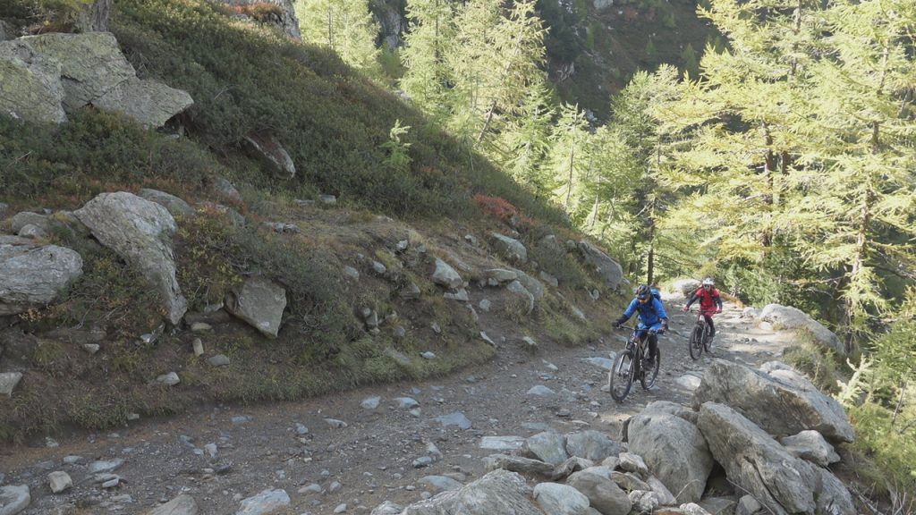 Discesa su single track. Sentiero “P – Mulino” nel comprensorio di La Thuile.