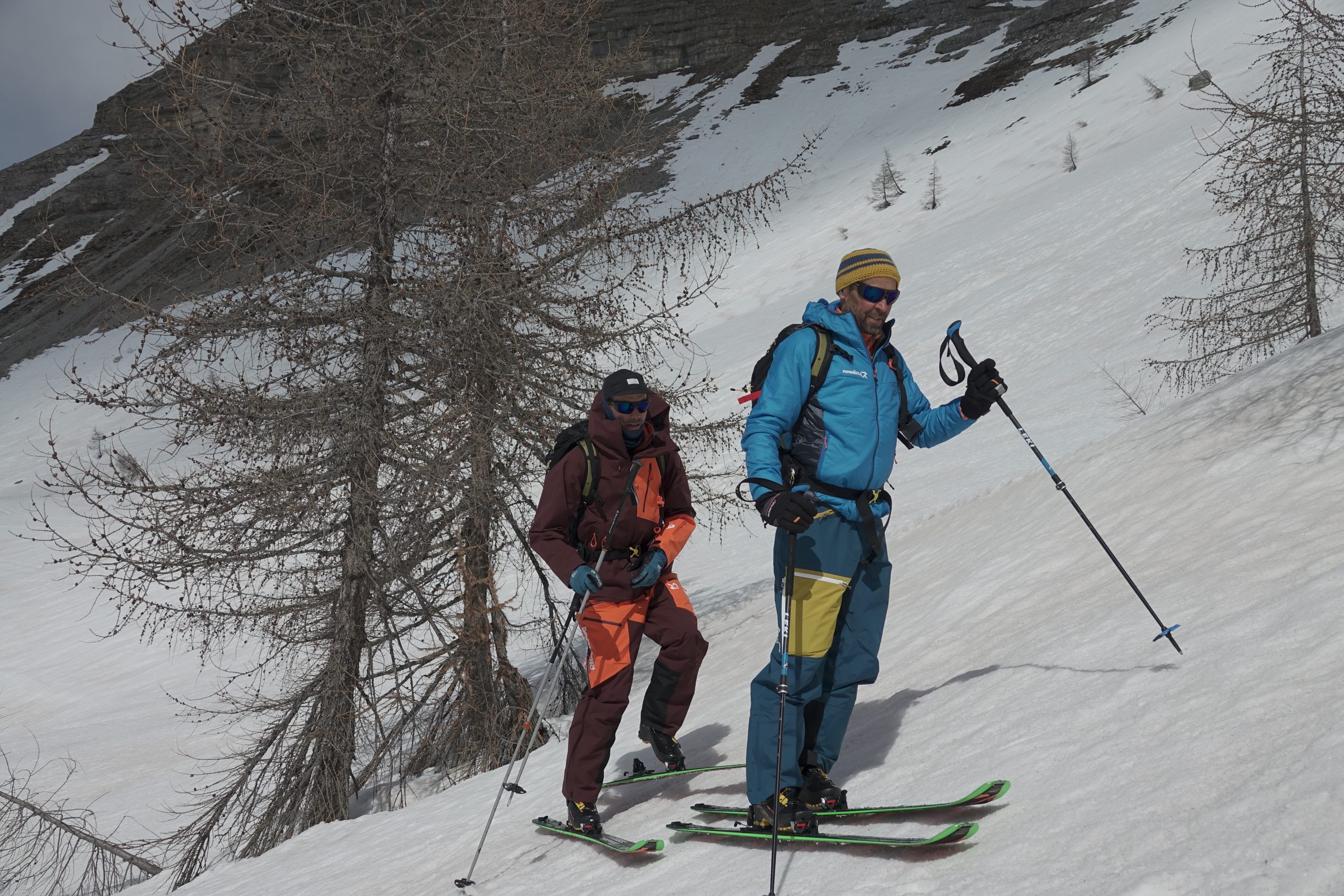 Difficoltà delle gite: pendii e canali con inclinazione tra i 40 e i 50 gradi di pendenza nei primi due giorni, gite di scialpinismo con difficoltà classiche il terzo e quarto giorno.