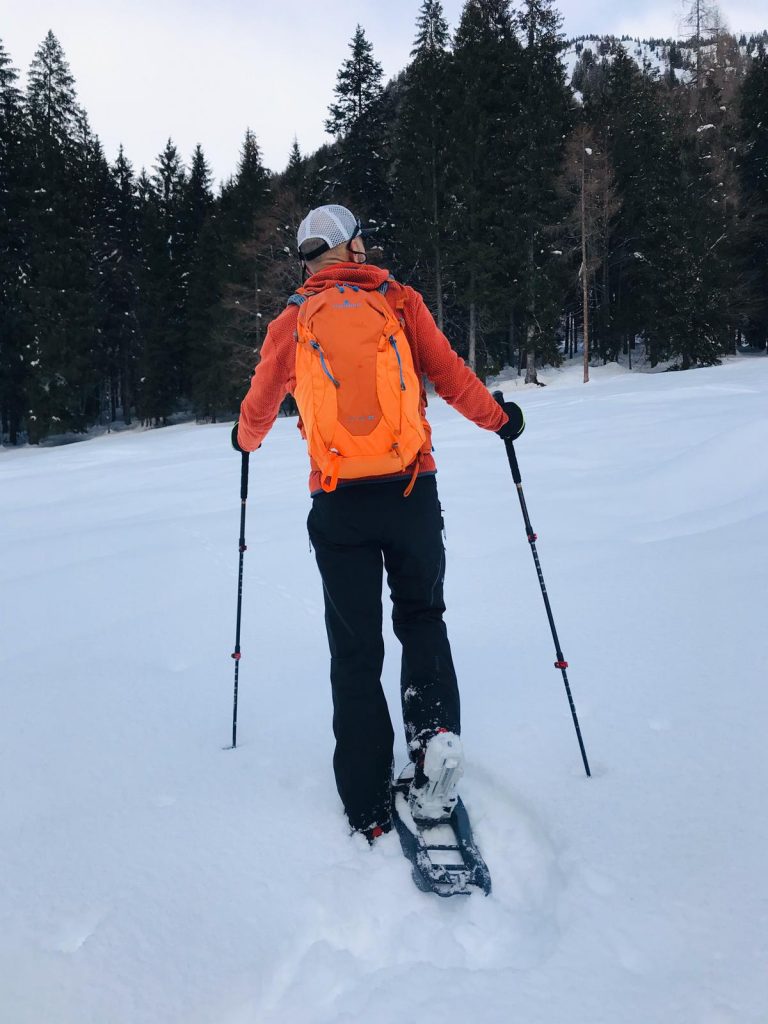 Durante la camminata sia su terreno già tracciato che da tracciare in neve profonda, la racchetta è risultata comoda e poco faticosa.
