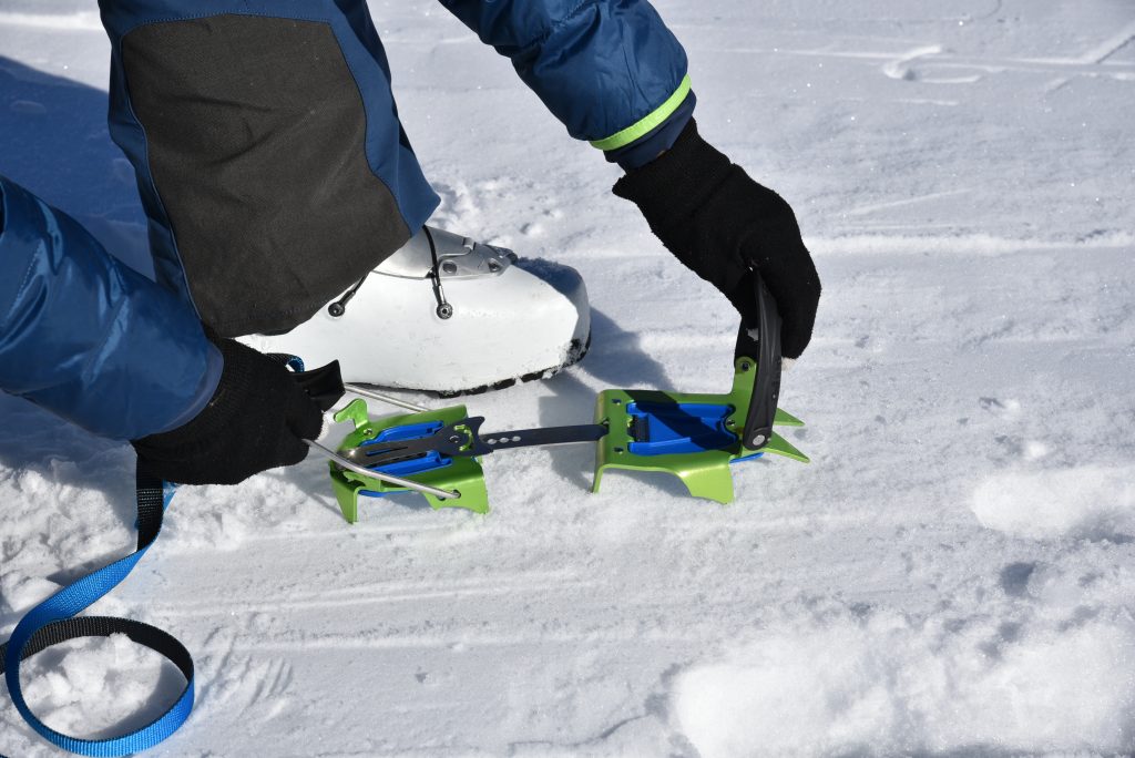 Il rampone si calza facilmente. La forma del puntale anteriore rende veloce e preciso il posizionamento dello scarpone, così come le alette in quella posteriore.