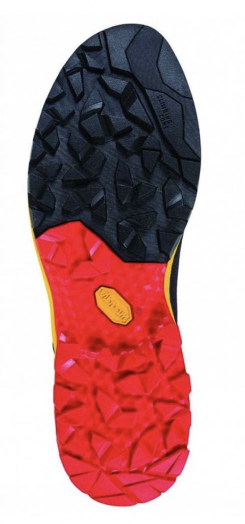 - materiale La suola a doppia mescola Vibram MegaGrip, sulla punta e avampiede, ed Idrogrip nella parta posteriore, bordo protettivo Climbing-inspired è in materiale leggero PU-TECH Lite