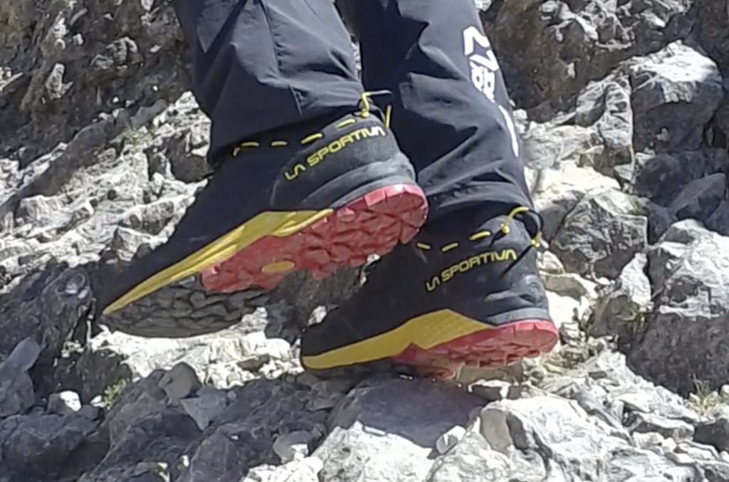 La suola Vibram dimostra un grip inaspettato sia lavorando in punta che in aderenza di piatto in salita e in discesa. Sugli scalini e sulle scale è aderente e precisa. Anche sui pochi tratti bagnati e in fase di attraversamento di alcuni brevi nevai, soprattutto durante l’avvicinamento, ha riposto in modo molto adeguato e aderente.
