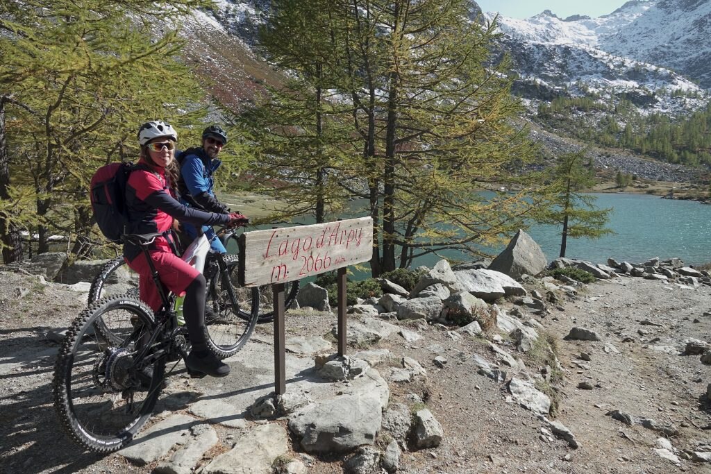 Giro in EMTB su strada poderale dal Colle San Carlo al Lago d’Arpy e ritorno. Tratti pedalati su asfalto sulla strada secondaria dalla frazione Pont Serrand proseguendo in direzione Col des Chavannes. Discesa su single track. Sentiero “P – Mulino” nel comprensorio di La Thuile.