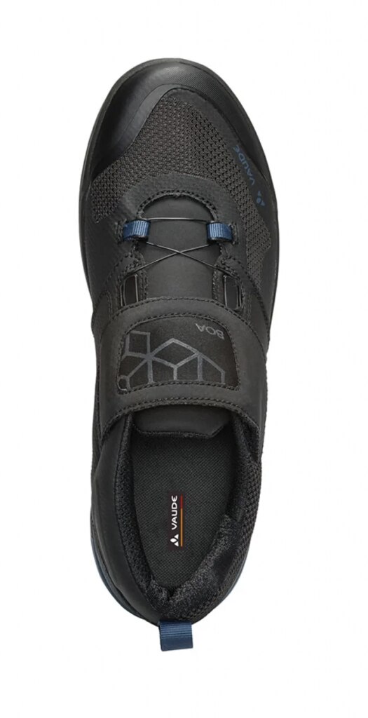 La suola ha un disegno diverso tra la zona centrale, punta e tallone. La parte centrale, quella che deve avere aderenza sul pedale, è più rigida, piatta e con un disegno esagonale. Sotto le dita e il tallone la suola presenta tasselli più marcati per una maggiore tenuta sul terreno quando bisogna spingere la bici o caricarla in spalla.