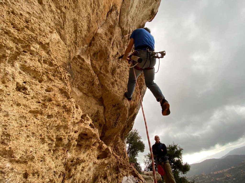 Arrampicata: provate su terreno sportivo, grado fino al 6A, tipo di roccia calcare, per l’esattezza Rocca di Perti, settore Olimpo.