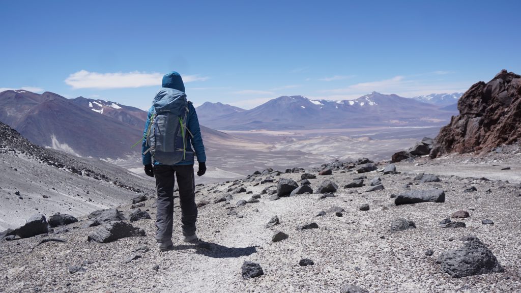 Abbiamo usato queste scarpe sia nelle giornate di trasferimento e turismo, sia durante l’avvicinamento in bici, sia per la salita a piedi fino al Campo base Atacama a quota 5.280. Ammortizzano bene la camminata e risultano confortevoli anche durante prolungate ore di utilizzo. Durante l’avvicinamento in bici la pedula non sarebbe stata necessaria ma in ogni caso non si è rivelata fastidiosa nella pedalata. È stato decisamente utile averla, rispetto ad una scarpa bassa, durante tutte le camminate, anche brevi, sui terreni sabbiosi o pietrosi intorno alle zone di bivacco e per le salite di acclimatamento. Come per tutti i modelli Meindl che abbiamo utilizzato troviamo che la vestibilità sia ottima e il piede si trovi sempre in condizioni confortevoli. La termicità è stata più che sufficiente anche nelle salite oltre i 5.000 metri; viceversa i primi giorni, a quote ancora basse, abbiamo un po’ patito il caldo ai piedi. Abbiamo ovviato a queste differenze di temperatura cambiando il tipo di calza.