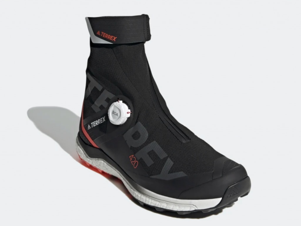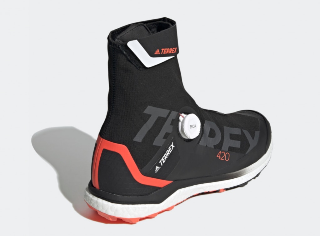 Il Sistema di chiusura Boa Fit System permette, con una semplice rotazione della rotella, di regolare la chiusura, avvolgendo il piede dentro una vera e propria scarpa da corsa. Infatti al di sotto della piccola ghetta idrorepellente c’è una scarpa con la tipica struttura da running di Adidas.