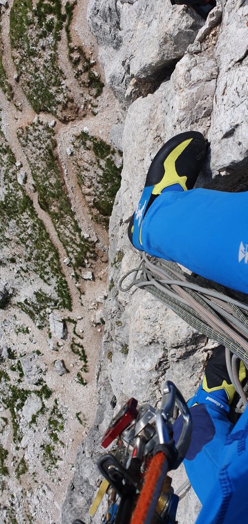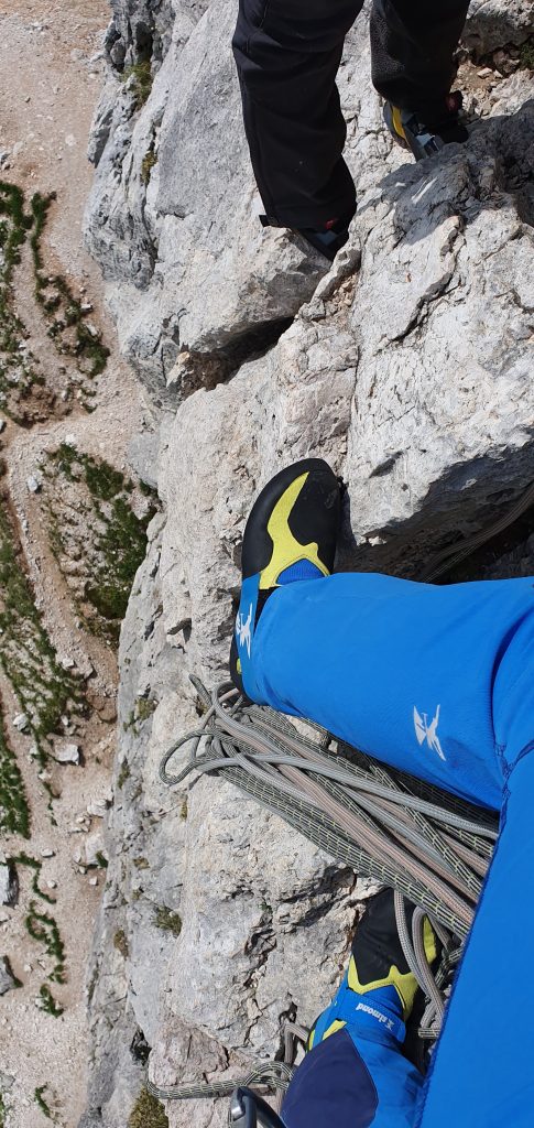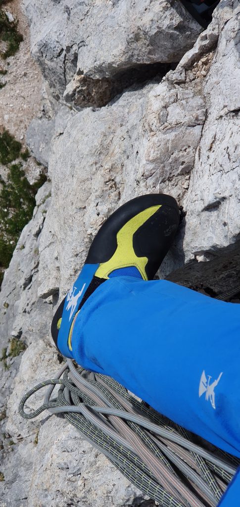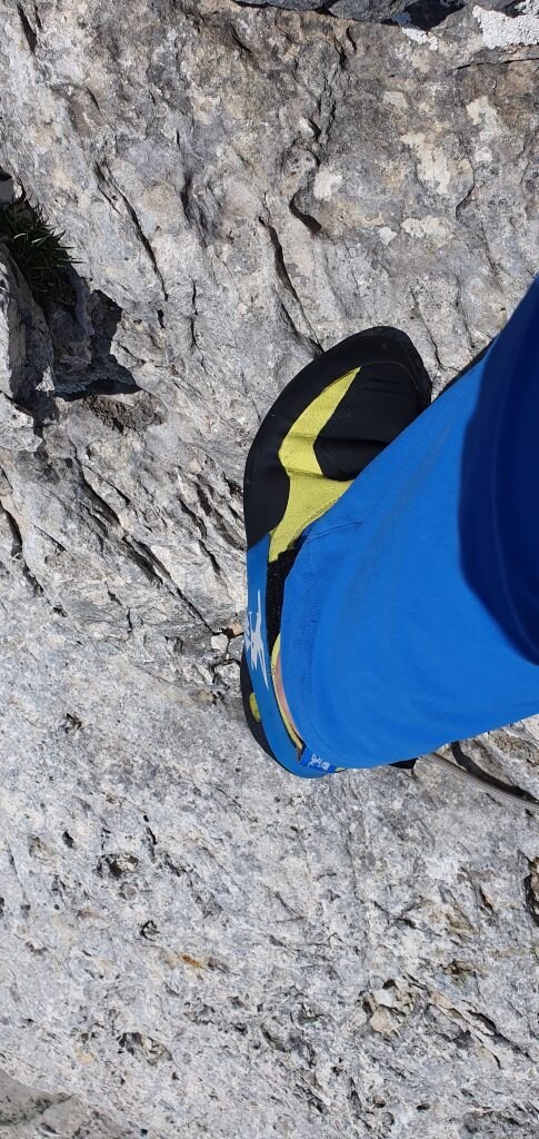 Ho provato la EDGE Slipper di SIMOND in falesia e su vie di roccia di calcare e granito.